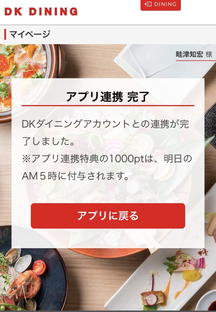 まず、DKダイニング会員登録とアプリ連携で1,000ポイントもらえます。